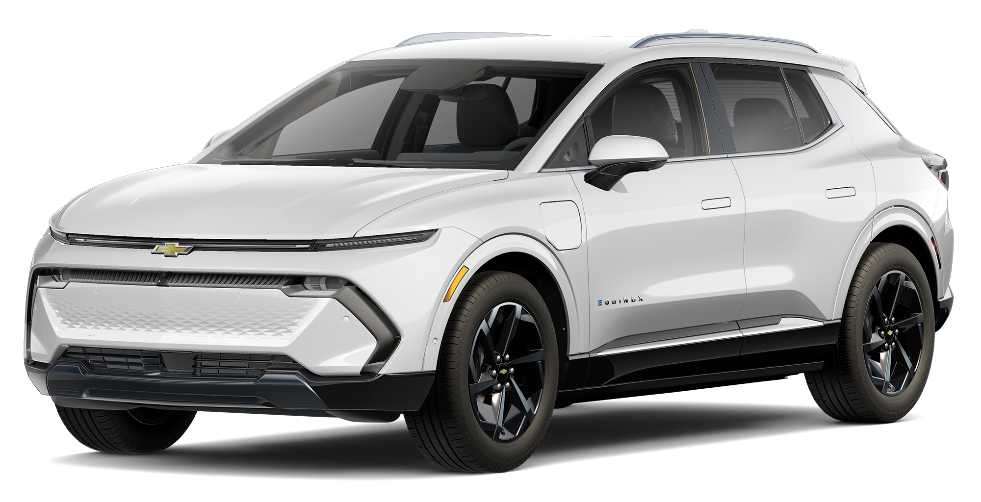 The Chevy Equinox EV showcases modern electric vehicle design with aerodynamic sculpting that enhances both efficiency and visual appeal. Its bold front fascia features a distinctive light bar that spans the width of the vehicle, creating an unmistakable presence on the road. The streamlined profile reduces wind resistance while maintaining the SUV's commanding stance, perfect for navigating the streets of Marshfield, MA, with style.
