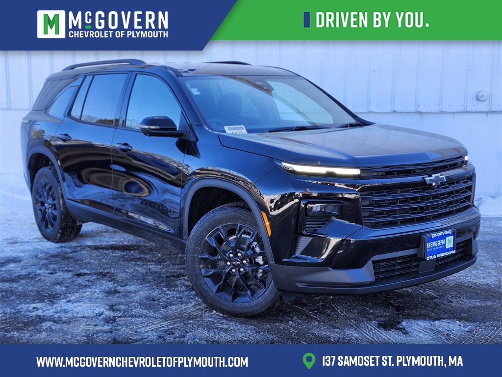 McGovern Chevrolet/Cadillac of Plymouth is proud to present this 2026 Chevrolet Traverse with AWD, 3rd row bench seat, 4-Way Manual Front Passenger Seat Adjuster, 4-Wheel Disc Brakes, 6 Speakers, 6-Speaker Audio System Feature, 8-Way Power Driver Seat Adjuster, ABS brakes, Air Conditioning, Alloy wheels, AM/FM radio: SiriusXM with 360L, Apple CarPlay/Android Auto, Auto High-beam Headlights, Automatic temperature control, Brake assist, Bumpers: body-color, Child-Seat-Sensing Airbag, Compass, Delay-off headlights, Driver door bin, Driver vanity mirror, Dual front impact airbags, Dual front side impact airbags, Electronic Stability Control, Emergency communication system: OnStar, Four wheel independent suspension, Front anti-roll bar, Front Bucket Seats, Front Center Armrest, Front dual zone A/C, Front reading lights, Fully automatic headlights, Heated door mirrors, Heated Driver and Front Passenger Seats, Heated front seats, Heated steering wheel, Illuminated entry, Low tire pressure warning, Navigation System, Occupant sensing airbag, Outside temperature display, Overhead airbag, Overhead console, Panic alarm, Passenger door bin, Passenger vanity mirror, Power door mirrors, Power driver seat, Power Liftgate, Power steering, Power windows, Premium Cloth Seat Trim, Radio data system, Radio: : Audio System w/17.7 Diagonal Display, Rear air conditioning, Rear anti-roll bar, Rear reading lights, Rear window defroster, Rear window wiper, Remote keyless entry, Security system, SiriusXM with 360L Trial Subscription, Speed control, Speed-sensing steering, Spoiler, Steering wheel mounted audio controls, Tachometer, Telescoping steering wheel, Tilt steering wheel, Traction control, Trip computer, Turn signal indicator mirrors, Variably intermittent wipers, Voltmeter, and Wheels: 18 Grazen Metallic Machined-Face Aluminum. Features and Options include:, AWD.